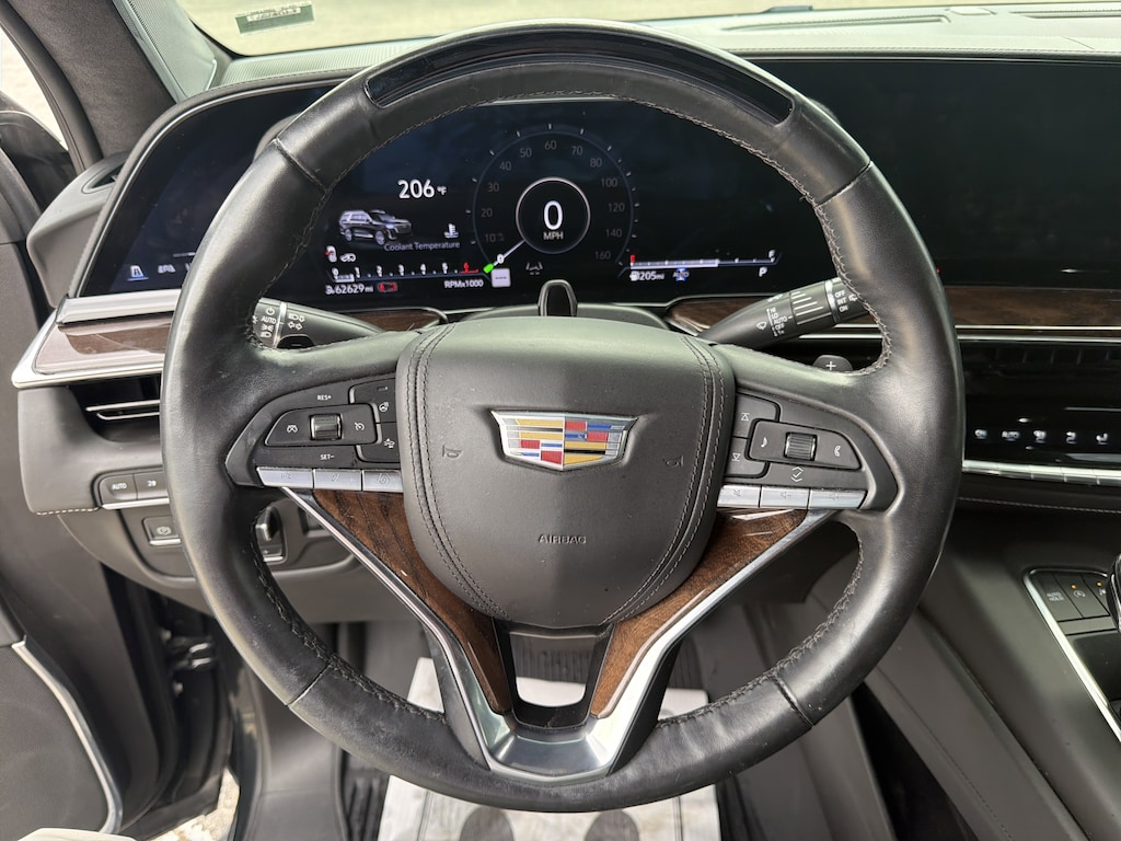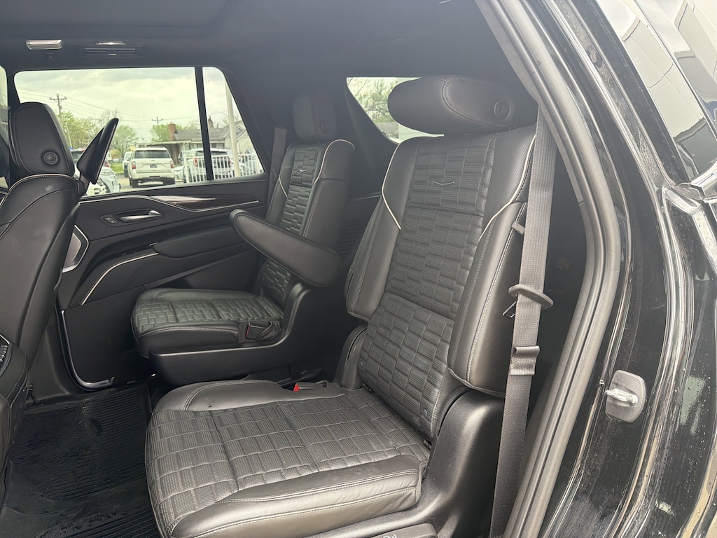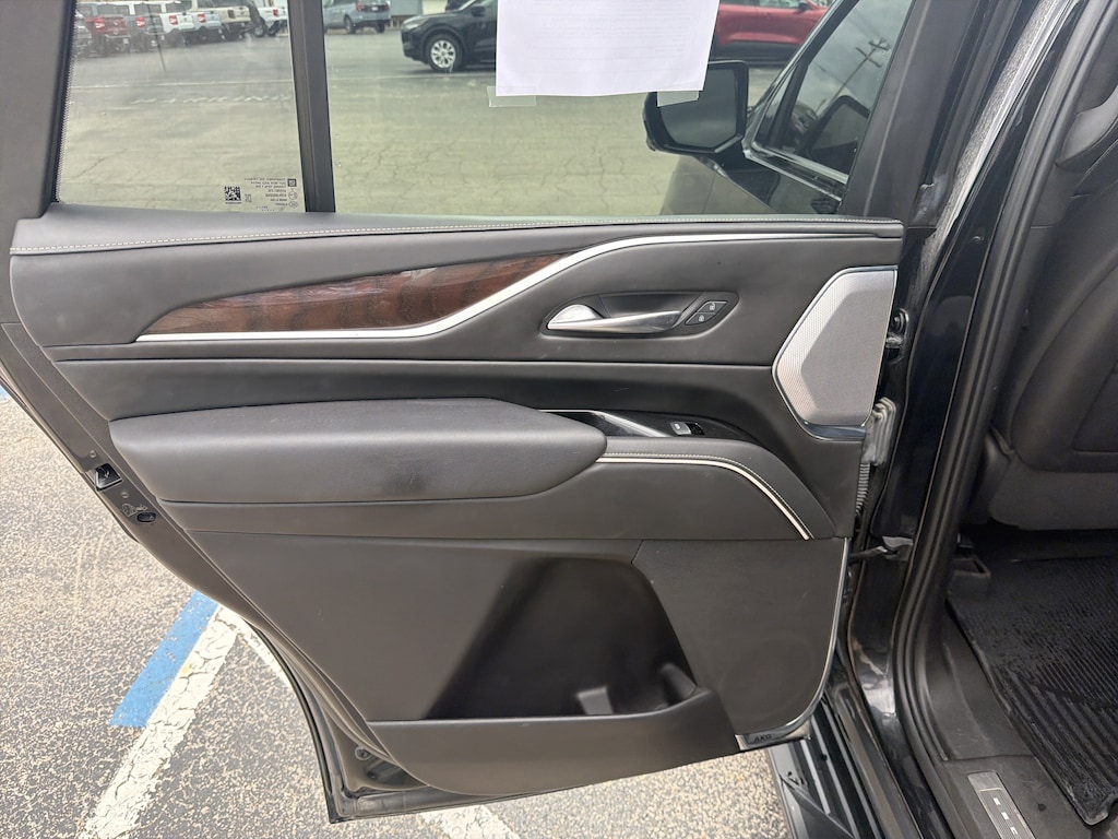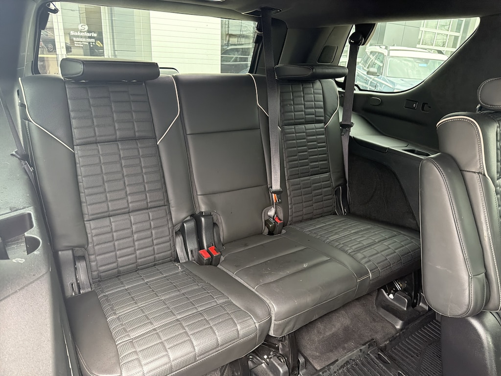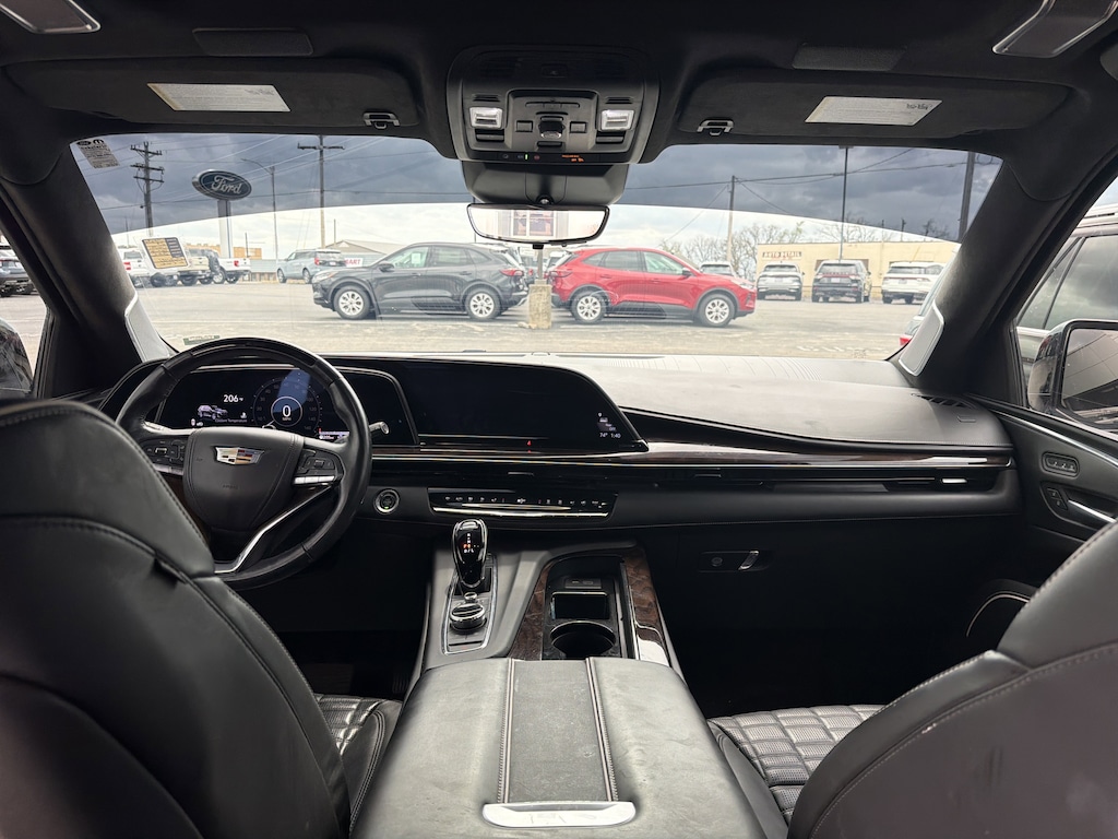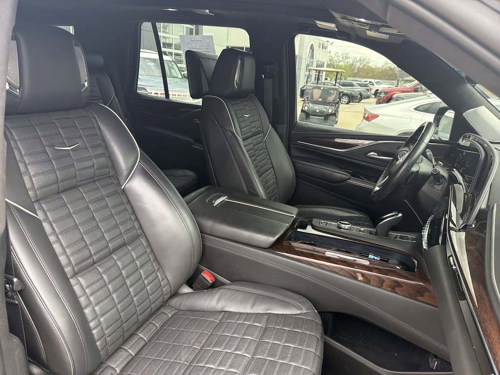 AWD, Black Leather, 16.9" Diagonal OLED Infotainment Screen, 2-Presets Memory For Driver Seat Adjuster, 3.23 Axle Ratio, 3rd row seats: split-bench, 4-Way Power Front Passenger Lumbar Seat Adjuster, A/V remote, Enhanced Automatic Emergency Braking, Enhanced Automatic Parking Assist, Front Bucket Seats, Headphones, Heads-Up Display, Hitch Guidance w/Hitch View, Illuminated entry, Integrated Trailer Brake Controller, Livery Package, Memory seat, Navigation System, Panic alarm, Power Panoramic Tilt-Sliding Sunroof, Remote keyless entry, Wheels: 22" 12-Spoke Polished Alloy. Black Raven 2023 Cadillac Escalade Sport Platinum AWD 10-Speed Automatic 6.2L V8