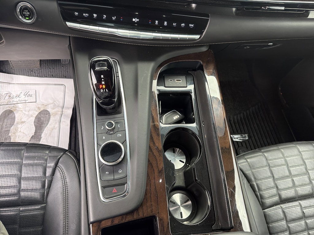 - Leather/genuine wood center console trim