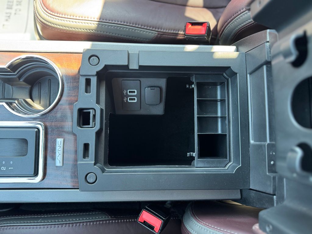- Simulated wood/metal-look center console trim